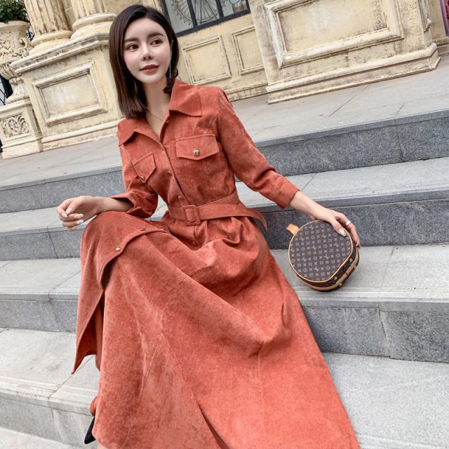 シャツワンピース レディース 前開きレトロ調シャツワンピ ウエストベルト付きロング丈 ワンピース シャツ チュニック マキシ丈ワンピーの通販はau Pay マーケット Mini House Au Pay マーケット店